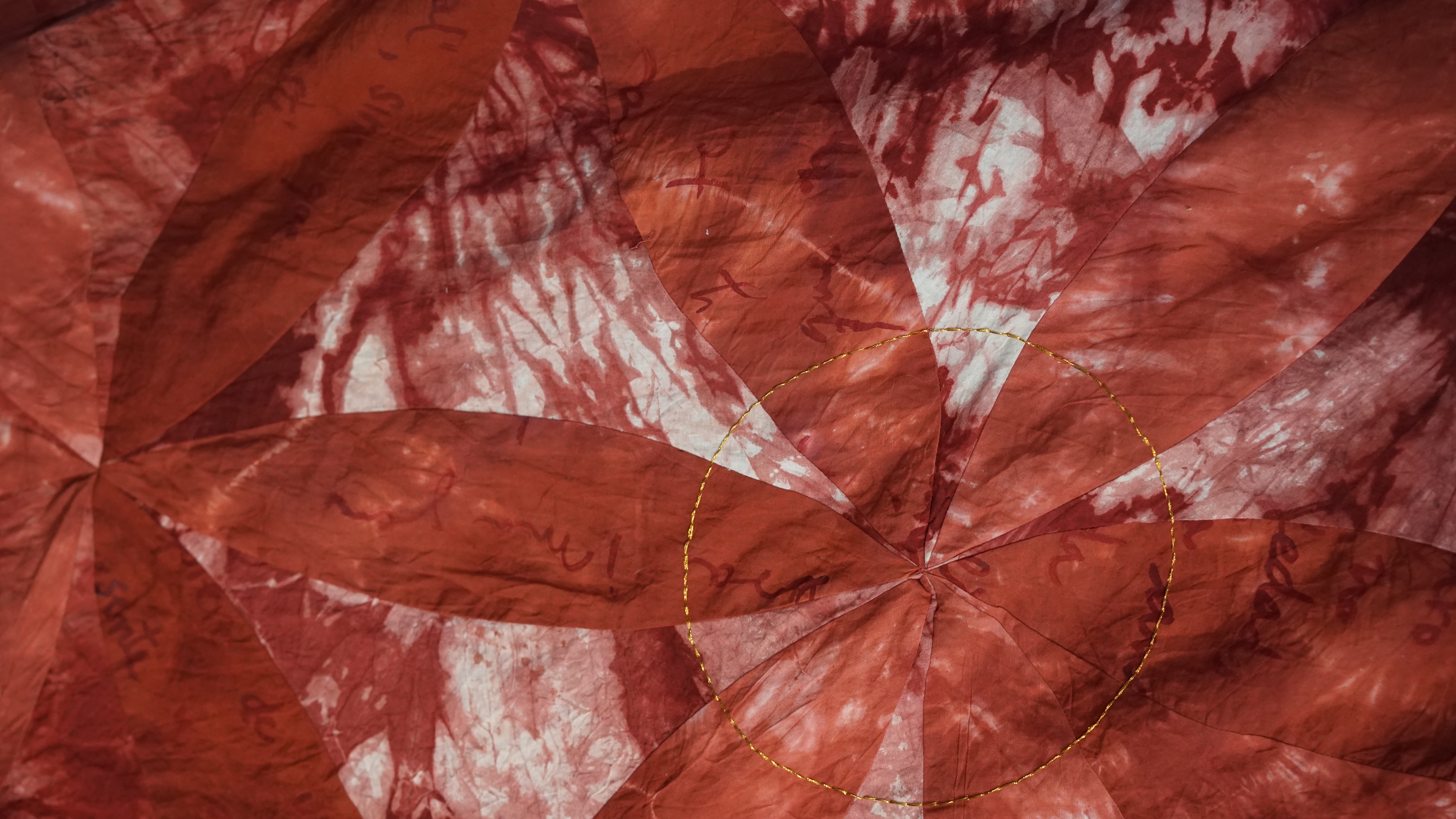 El desvanecimiento se configura bajo la geometría sagrada del árbol de la vida, símbolo vinculado a la unión del cosmos, en este caso remitiendo a la unión del alma con el cuerpo. Se toma de referencia la creencia budista, en la cual cuenta la historia, que Buda bajo el Árbol Bodhi, alcanzó su iluminación al reconocer el ciclo del samsara. Es por esto que “El desvanecimiento” inicia con la escritura sobre la tela, a modo de corriente de la conciencia. Se tiñe, se corta y se unen las piezas, para finalizar en el bordado de cada sefirot. La acción consiste en el caminar como proceso meditativo y reiterativo, introducirse al interior de la montaña, en sus cavidades y hondonadas, en búsqueda del sino del ser.